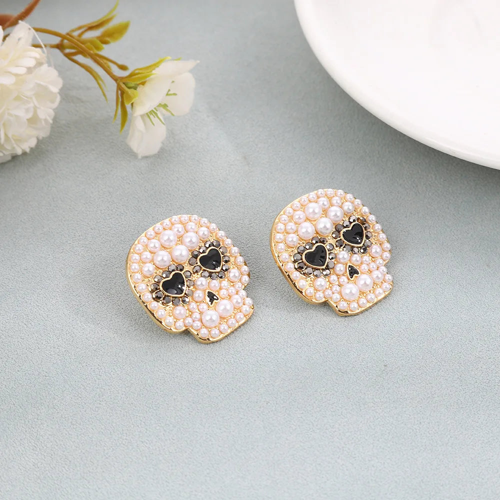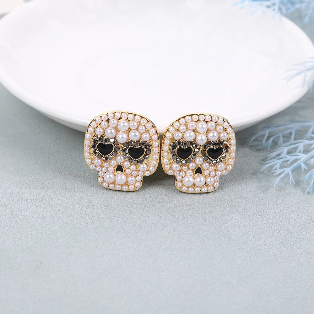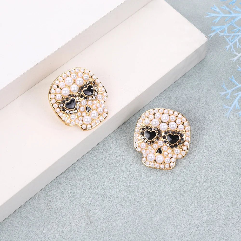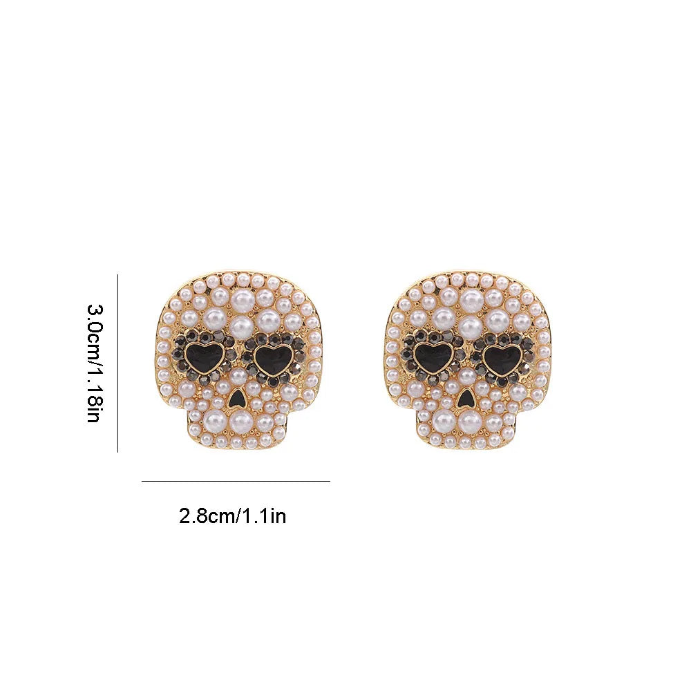 Creative Micro inlaid Pearl Skeleton Heart Eye Skull Stud Earrings Halloween Fashion Personalized Jewelry For Women Gifts
