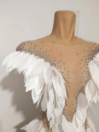 Sparkly rhinestone 3D White Sequin Feather Dress