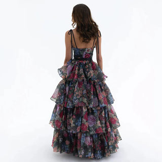 New princess suspender high low skirt, women's floral cake skirt