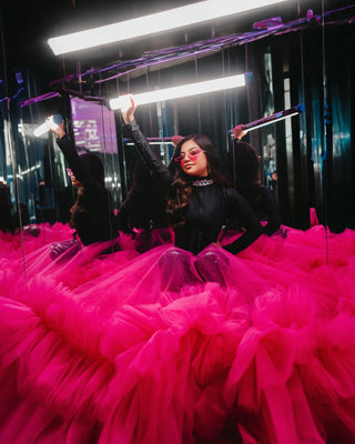 Gothic Hot Pink Sheer Tulle Tutu Gown Custom